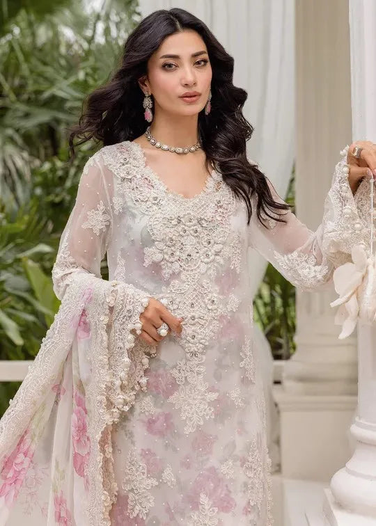 Embroidered Chiffon Front With Pearls Embroidered Organza Ghera Patti